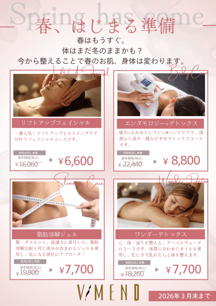 | ご予約 | 03-3383-3531(代) ※お電話がつながりましたらエステルームのご利用をお申し付けください |